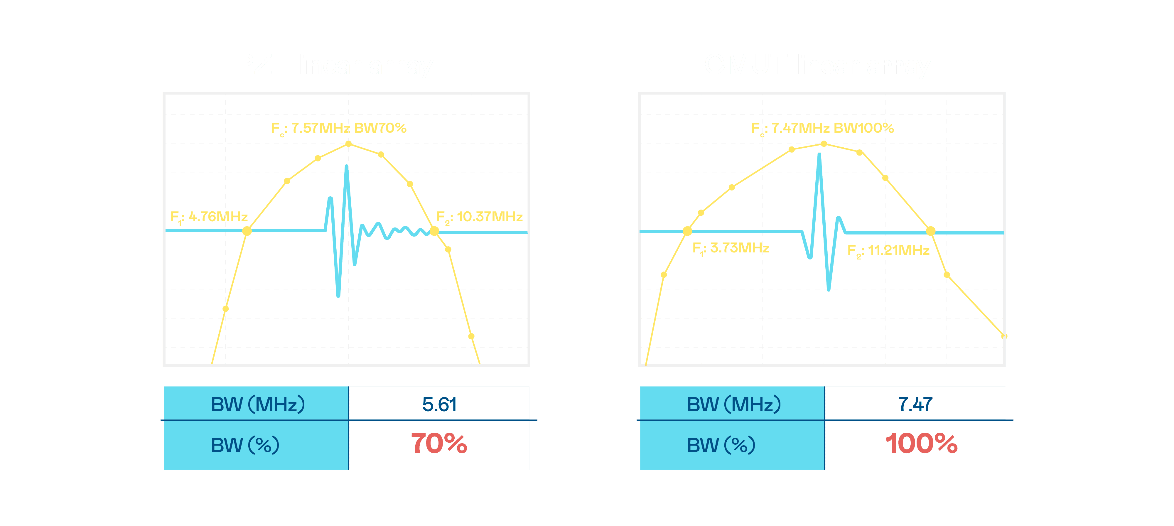 超音波影像的解析度高低,,首先取决于探头能发出的讯号频宽。。。。NG大舞台 CMUT 可提供高清晰的超音波讯号,,提供高频宽、、、高灵敏度、、、、影像纹理细节更高的超音波影像,,协助医护人员缩短影像判读时间及利用精准的医疗影像进行诊断。。